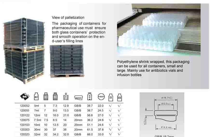 Moulded Glass Vials for Injection, USP type I,II,III
